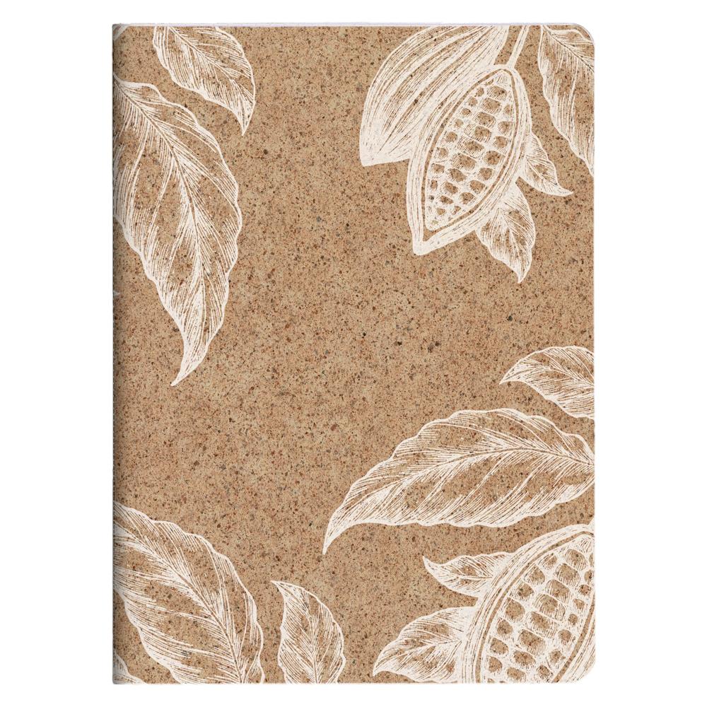 La fabrication du papier de cacao s'inscrit dans une démarche de développement durable et écologique en utilisant les coques et les fibres du cacaoyer. Ce papier naturel de haute qualité a une couleur et une finition de surface individuelles et uniques grâce aux ingrédients transformés. 3 visuels assortis motifs coques de cacao Finition impression sérigraphie blanche La qualité et la douceur du papier Clairefontaine vélin velouté ivoire 90g, certifié PEFC et fabriqué dans les Vosges par Clairefontaine.