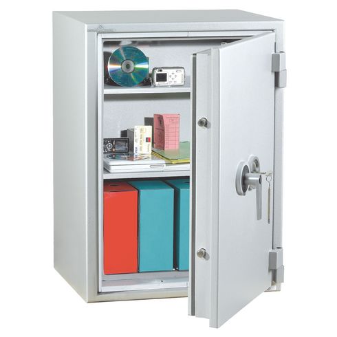 Serrure à clef ( 2 clés fournies ). 2 Tablettes intérieures réglables tous les 4 mm. Poids : 140 Kg.