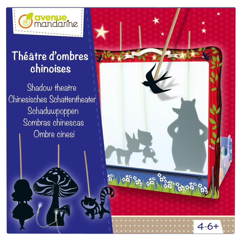 Afin de favoriser la créativité et l'imaginaire de chaque enfant et de créer de tendres moments de partage en famille, Avenue Mandarine a créé ce joli théatre d'ombres. Un décor à monter, 28 personnages mythiques et une guirlande lumineuse pour éclairer le tout, dans un coffret poétique qui s'adresse à tous les amoureux de belles histoires. Piles non incluses. Contenu : 1 théatre en carton à monter, 1 feuille semi-opaque, 6 planches de 4-5 personnages en papier, 28 batônnets en bois, Guirlande de 5 LED avec boitier interrupteur, 1 rouleau de masking tape, 1 notice.