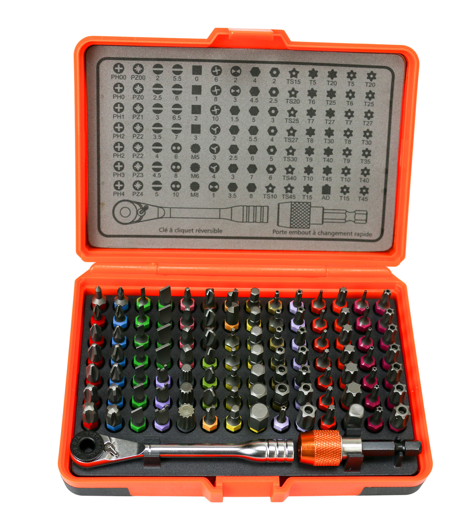 Coffret clé à cliquet avec 98 embouts