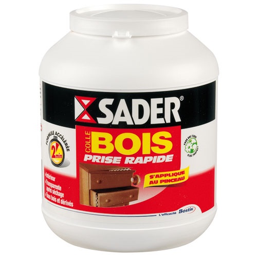 La colle à bois Rapide SADER est une colle vinylique blanche pour l'assemblage et le placage en extérieur de tous types de bois et leurs dérivés (contreplaqués, lamifiés, stratifiés ...). Elle est recommandée en intérieur humide (salle de bain, aménagement intérieur des bateaux, cave ...) et en extérieur, protégé des intempéries (bois abrités ou recouverts de peinture, lasure ou vernis). Quantité : 650 g. Prise rapide en 5 min. Excellente résistance à l'humidité. Transparente après séchage, elle ne tâche pas. Sans solvant. Ininflammable.