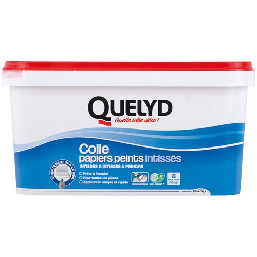 La colle papiers peints intissés de 5 Kg de la marque QUELYD est idéale pour coller tous les papiers envers intissé/non intissé, VLI (vinyles lourds intissés), de toutes largeurs, à peindre ou non, dans toutes les pièces de la maison. Application au rouleau ou à la brosse directement sur le mur. Colle prête à l'emploi : facile et rapide à appliquer. Maintien immédiat. Collage final ultra résistant. Idéal pour la pose en cuisine ou salle de bain.