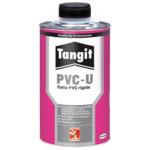 La colle pour tubes et raccords en PVC 1 Kg de la marque TANGIT convient pour l'assemblage des canalisations en PVC rigide. Cette colle ne peut pas être utilisée pour les tubes et raccords en contact avec de l'eau potable. Cette colle gel répond aux attentes et aux besoins des professionnels comme des particuliers. Testée jusqu'à 51 bars, elle offre une haute résistance à la pression. Bien lire les conseils d'utilisation avant emploi. Colle en gel pour tubes et raccords en PVC rigide. Composition : chlorure de polyvinyle non plastifié, solvants forts. Texture : gel. Ne coule pas. Non adaptée pour tubes et raccords d'eau potable. Convient pour la distribution de l'eau jusqu'à + 60 °C Certification CSTB n° 03AD04 Sans THF.