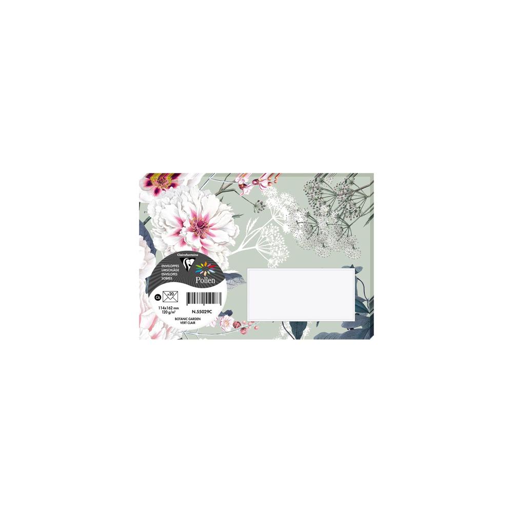 Une collection d'enveloppes imprimées aux végétaux délicats et aux fleurs voluptueuses. Féminines et subtiles, ces enveloppes apporteront une touche raffinée à vos correspondances. Ce paquet contient 20 enveloppes imprimées 120g/m2 au format C6 (11,4x16 ,2cm). Le papier est certifié FSC, sans acide et compatible pour l'écriture, l'impression jet d'encre et laser. Fabrication Française dans nos ateliers à Etival-Clairefontaine dans les Vosges, avec un savoir-faire depuis 1880.