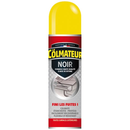 Le colmateur spray bitume d'étanchéité noir de 250 mL de la marque LE COLMATEUR est un aérosol d'étanchéité qui permet de colmater tous types de fuite. Grâce à son format spray, ce colmateur d'étanchéité s'applique très facilement. Colmatez les fuites et les fissures rapidement. Le spray bitumeux d'étanchéité s'infiltre dans les trous, les fissures et les craquelures pour protéger la surface traitée de l'air et de l'humidité. Une fois sec, ce joint devient flexible. Conseils d'utilisation : Bien secouer le spray avant utilisation. Nettoyer la surface à traiter. Appliquer le spray bitumeux sur l'endroit à traiter et aux alentours. Pour une conservation optimale du produit, bien nettoyer la buse après chaque utilisation . Rendement : 1 à 3 m². Temps de séchage : 2 h en surface, entre 12 et 24 h en profondeur en fonction de l'épaisseur de la couche. Facilement recouvrable avec de la peinture.