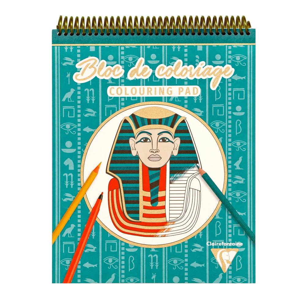Ce carnet de coloriage au format 25x20cm contient 20 feuilles imprimées recto (10 illustrations sur le thème de l'Egypte répétés 2 fois) sur un papier dessin 250g/m2.