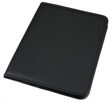 Description détailléeBloc-notes inclus, passant pour stylos, poche interne pour format A4, dimensions: (L)240 x (P)15 x (H)310mm, couleur: noir