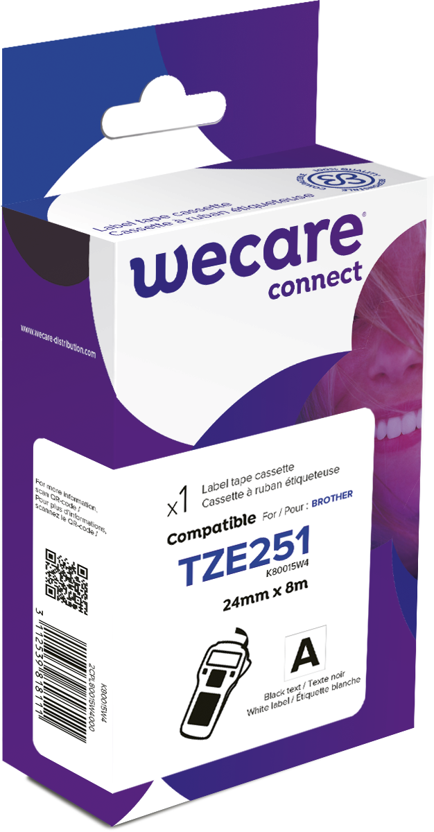 Consommable étiqueteuse WECARE - standard - Noir/Blanc - pour BROTHER TZE-251