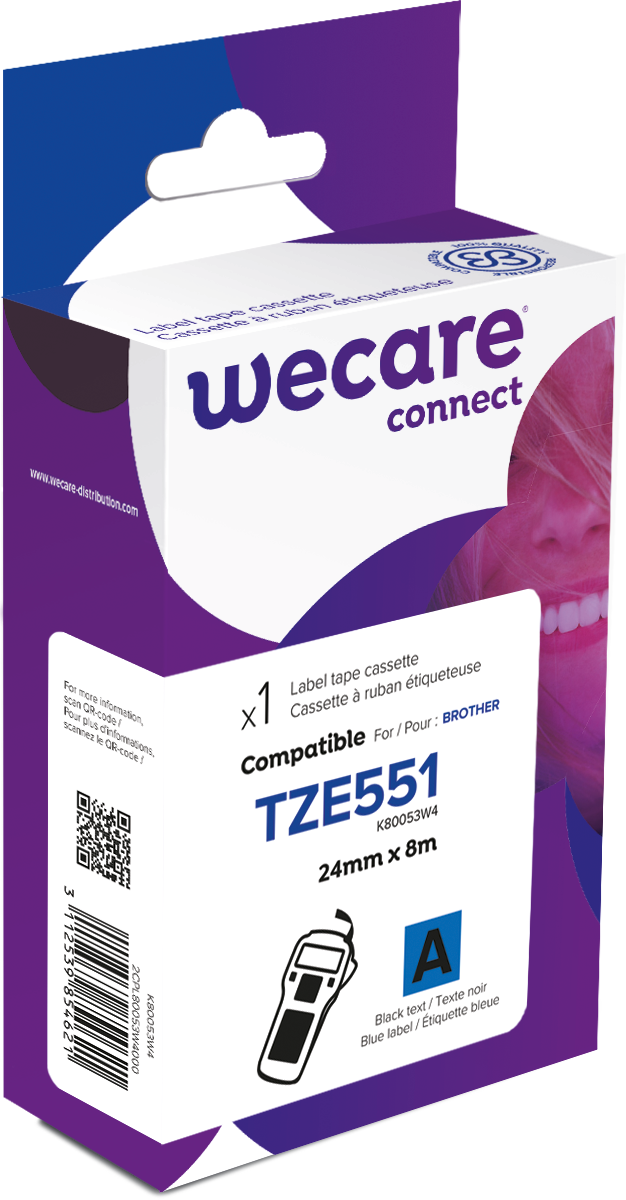Consommable étiqueteuse WECARE - standard - Noir/Bleu - pour BROTHER TZE-551