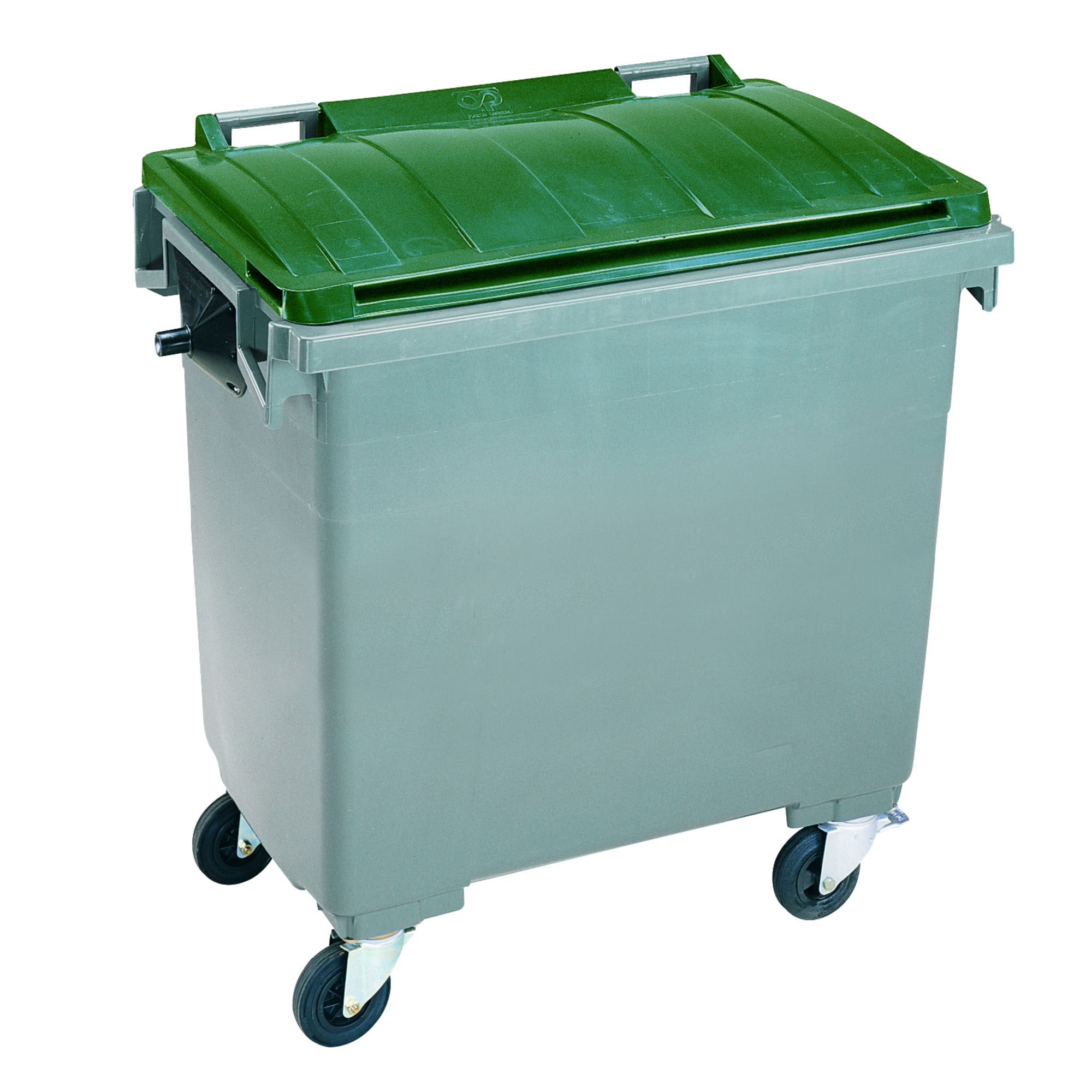 Poignées sur 3 faces (2 arrières, 1 de chaque coté). Capacité : 1000 litres. Dimensions : H 131 x L 136 x P 107 cm.