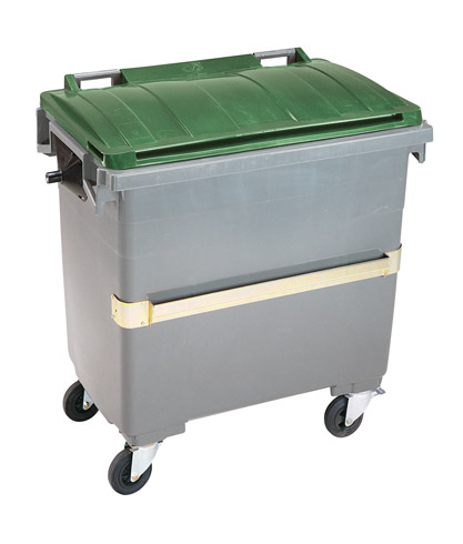 Poignées sur 3 faces (2 arrières, 1 de chaque coté). Capacité : 660 litres. Dimensions : H 117 x L 136 x P 78 cm.