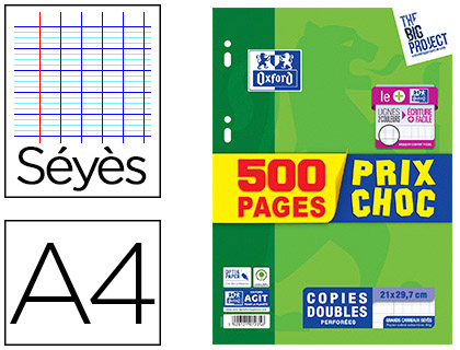 Complétez avec ces produitsClasseur 4 anneaux plastifié Oxford Budget A4 - dos 2 cm1 avisà partir de2,54 € HTOeillet de renfort Avery blancs - Pochette de 140à partir de0,66 € HTFeuilles simples détachables 300 pages séyès format A4 21 x 29,7 cm Oxford - perforéesà partir de7,65 € HTCopies doubles 400 pages séyès 90g format A4 21 x 29,7 cm Metric Clairefontaine - perforéesà partir de10,44 € HTFeuilles simples perforées, A4, Seyès, Offre Spéciale7,85 € HTCopies doubles 100 pages séyès 90g format A4 21 x 29,7 cm Metric Clairefontaine - perforéesà partir de4,66 € HT