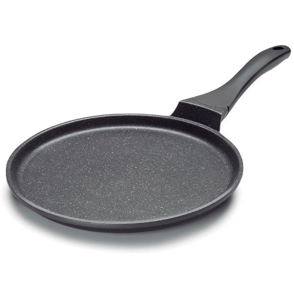 Crêpière 26 cm - Eco Piedra Black - Cette crêpière est fabriquée en fonte d'aluminium de grande qualité pour une répartition homogène de la chaleur sur toute sa surface - Revêtement anti-adhésif 3 couches - Couche de finition avec particules de pierre : ultra-résistant aux rayures - Permet une cuisson saine et diététique grâce à la possibilité d'utiliser très peu de matière grasse - Poignée ergonomique avec toucher soft touch pour une prise en main sûre et agréable - Tous feux dont induction - Garanti 2 ans.