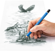 Description détailléeCrayon hexagonal, diamètre de la mine: 5,3 mm, vernis bleu, extrémité en noir, mine résistante encollée, de la série 'Design Journey'