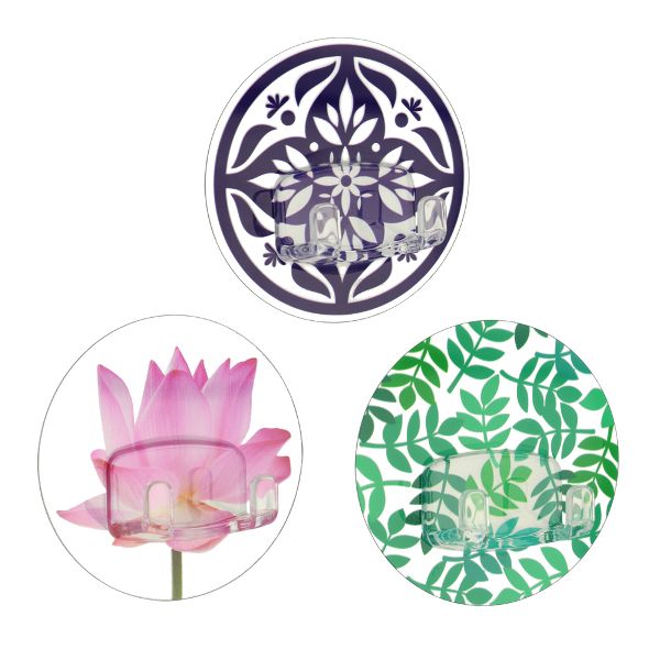 Crochet double statique U-FIX - Coloris assortis - 3 motifs assortis : 2 x fleur, 2 x feuille, 2 x carreaux – En plastique + film de caoutchouc - Statique sans adhésif -Repositionnable - Design moderne - S’applique, sans colle ni vis, sur toute surface lisse et propre (carrelage mural, miroir, vitre) - Idéal dans la cuisine ou la salle de bain - Dimension : Ø 8,5 cm.
