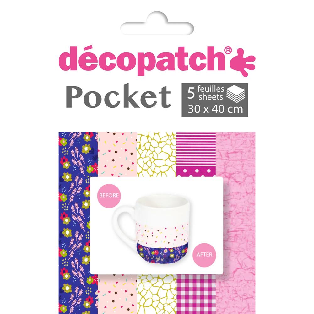 Les feuilles Décopatch vous permettront de décorer et de personnaliser de multiples supports (carton, polystyrène, bois, métal, poterie...) à l'aide du vernis colle Décopatch (non fourni). Une façon écologique de redonner vie aux vieux objets (meubles, articles chinés ou détournés de leur utilisation d'origine...). Plus de gâchis ! La mode est au reçyclage. Pour cela, rien de plus facile : déchirez ou découpez quelques morceaux de papier Décopatch d'environ 2x2 cm - Appliquez la colle sur le support que vous avez choisi. Déposez un morceau de papier sur la surface encollée et mettre une deuxième couche de colle dessus. Superposez les morceaux de papier pour recouvrir le support en mixant les couleurs et les motifs facilement grâce à cette petite pochette de 5 motifs assortis. Feuilles 30x40 cm - S'applique sur surfaces planes ou irrégulières - 5 motifs assortis.