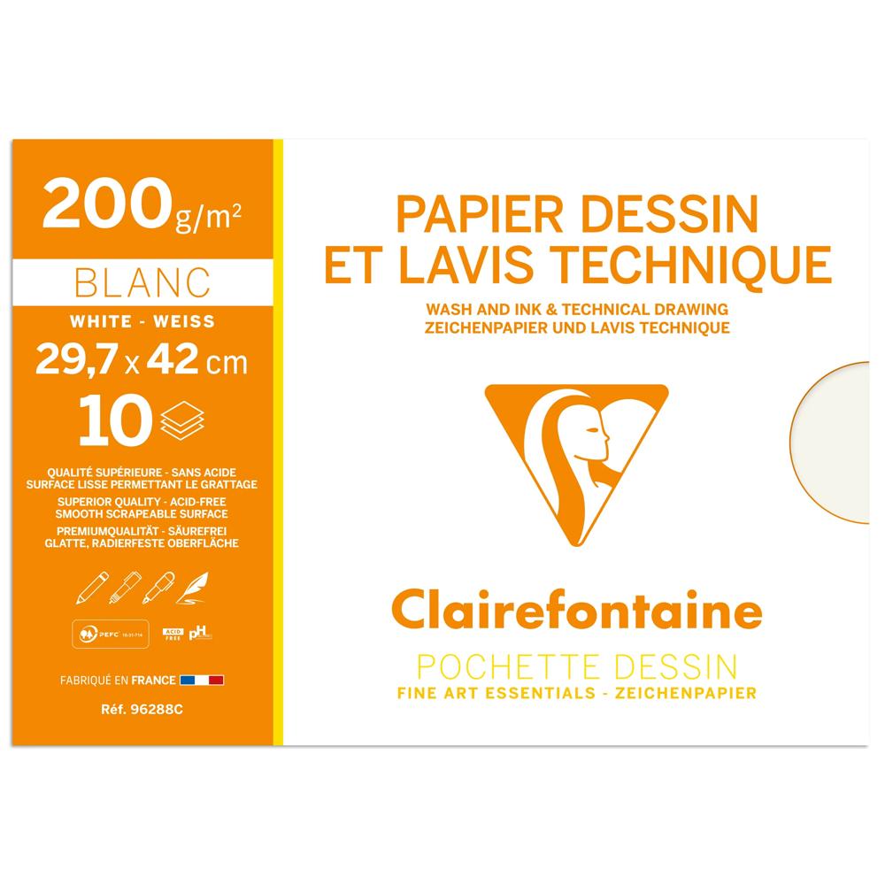 Papier blanc lisse au grain très fin. Idéal pour les tracés très précis au crayon ou à la plume. Adapté également aux lavis à l'encre plus ou moins dilués et superposés. Sans acide, au pH neutre.