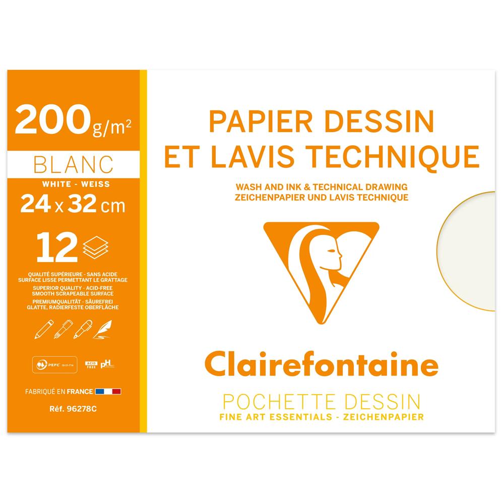 Papier blanc lisse au grain très fin. Idéal pour les tracés très précis au crayon ou à la plume. Adapté également aux lavis à l'encre plus ou moins dilués et superposés. Sans acide, au pH neutre.