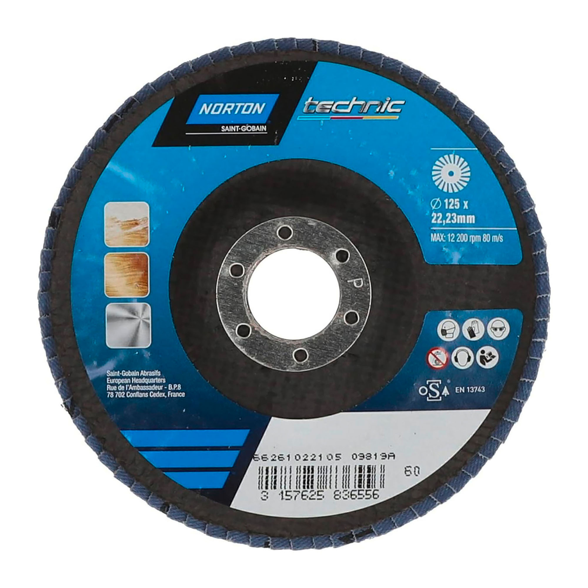 Disque Ø 125 mm, alésage 22,23 mm.