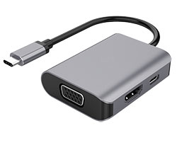 DLH Adaptateur USB-C vers HDMI ou VGA. Résolution maximum (HDMI): 3840 x 2160 pixels, Certification: RoHS, CE. Couleur du produit: Noir, Argent, Matériau du boîtier/corps: Aluminium. Poids: 42 g. Poids du paquet: 50 g