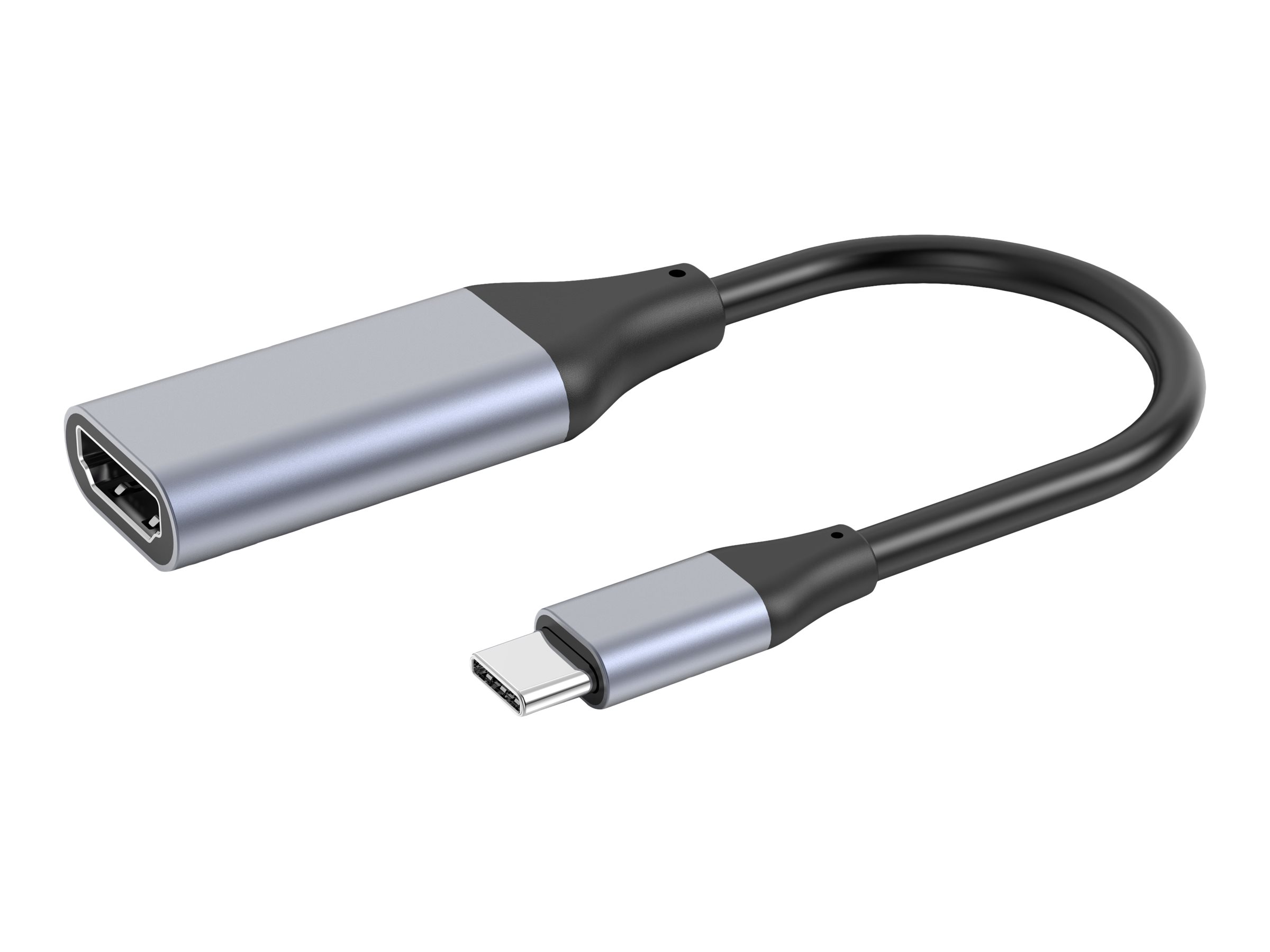 DLH Adaptateur video USB-C vers HDMI 2.0 (4K / 3840x2160 / 60Hz). Résolution maximale: 3840 x 2160 pixels, Résolution maximum (HDMI): 3840 x 2160 pixels. Couleur du produit: Aluminium. Largeur: 20 mm, Profondeur: 10 mm, Hauteur: 208 mm. Largeur du colis: 157 mm, Profondeur du colis: 19 mm, Hauteur du colis: 255 mm. Quantité: 1 pièce(s)