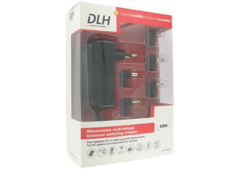 DLH ALIMENTATION SECTEUR MULTIVOLTAGE UNIVERSELLE 2.25A - Tension réglable 3/4.5/5/6/7.5/9/12V. Type de chargeur: Intérieure, Type de source d'alimentation: Secteur, Compatibilité de chargeur: Universel. Tension d'entrée: 100 - 240 V, Tension de sortie (max): 12 V, Courant de sortie de l'adaptateur secteur: 2,25 A. Couleur du produit: Noir