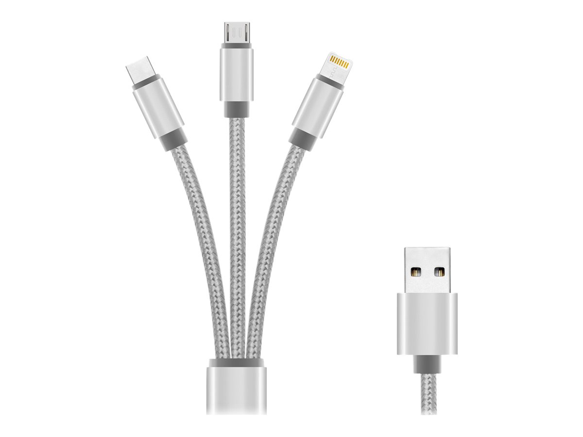 DLH CABLE 3 EN 1 USB-A VERS USB-C / MICRO USB / APPLE LIGHTNING. Couleur du produit: Argent, Blanc, Connecteur 1: USB A, Longueur de câble: 1,2 m. Quantité: 1 pièce(s)