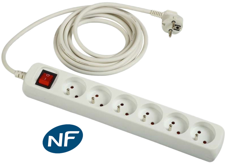 DLH Multiprise secteur (NF) munie de 6 prises avec interrupteur. Longueur de câble: 1,5 m, Installation prise en charge: Intérieure, Couleur du produit: Blanc. Nombre de prises en sortie: 6 sortie(s) CA. Puissance d'alimentation max.: 3500 W, Intensité (max.): 16 A. Largeur: 305 mm, Profondeur: 38 mm, Hauteur: 50 mm. Largeur du colis: 400 mm, Profondeur du colis: 38 mm, Hauteur du colis: 70 mm