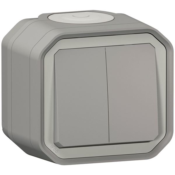 Le double poussoir ou va-et-vient Plexo gris de chez Legrand a 3 fonctions réalisables avec la même référence. Double va-et-vient 10 A, double poussoir inverseur 10 A, va-et-vient + poussoir inverseur 10 A. Livrée en mode double poussoir inverseur. Plexo, commande d'éclairage étanche complète, prête à installer en apparent au mur, livrée avec boitier saillie. Interrupteur ou va-et-vient 10A ou poussoir 10A avec connexion rapide sans outil et repérage couleur. Etanche et robuste IP55 IK08, pour tous les lieux de pose et tous les environnements. 2 modes de câblage possibles : câblage hors platine et pose du mécanisme par simple clip, câblage possible avec la mécanisme déjà clipsé sur la platine. Finition Gris, l'indispensable pour tous les chantiers.
