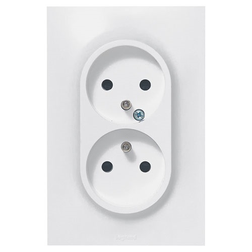 La double prise de courant 2P+T Neptune 16 A blanc de chez Legrand s’installe dans boîte d’encastrement Batibox 1 poste. Bornes à vis. Neptune, une double prise de courant monobloc, de couleur blanche, prête à installer en encastré, un appareillage simple et robuste qui s'adapte à tous les projets en rénovation ou en neuf. Installation en monoposte : permet de remplacer 1 prise par 2 prises sans changement de boîte d'encastrement. Avec éclips de protection pour protection des enfants. Connexion rapide sans outil par bornes automatiques. 1 référence = 1 appareil complet prêt à installer.