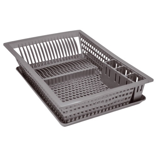 Egouttoir à vaisselle 18 couverts de la marque ALUMINIUM ET PLASTIQUE avec plateau de récupération de l'eau. Caractéristiques de L'égouttoir à vaisselle : Coloris : gris moucheté Longueur : 48 cm. Largeur : 35.5 cm. Hauteur : 11 cm.. Matière : plastique. Egouttoir fourni avec le platerau de récupération d'eau.