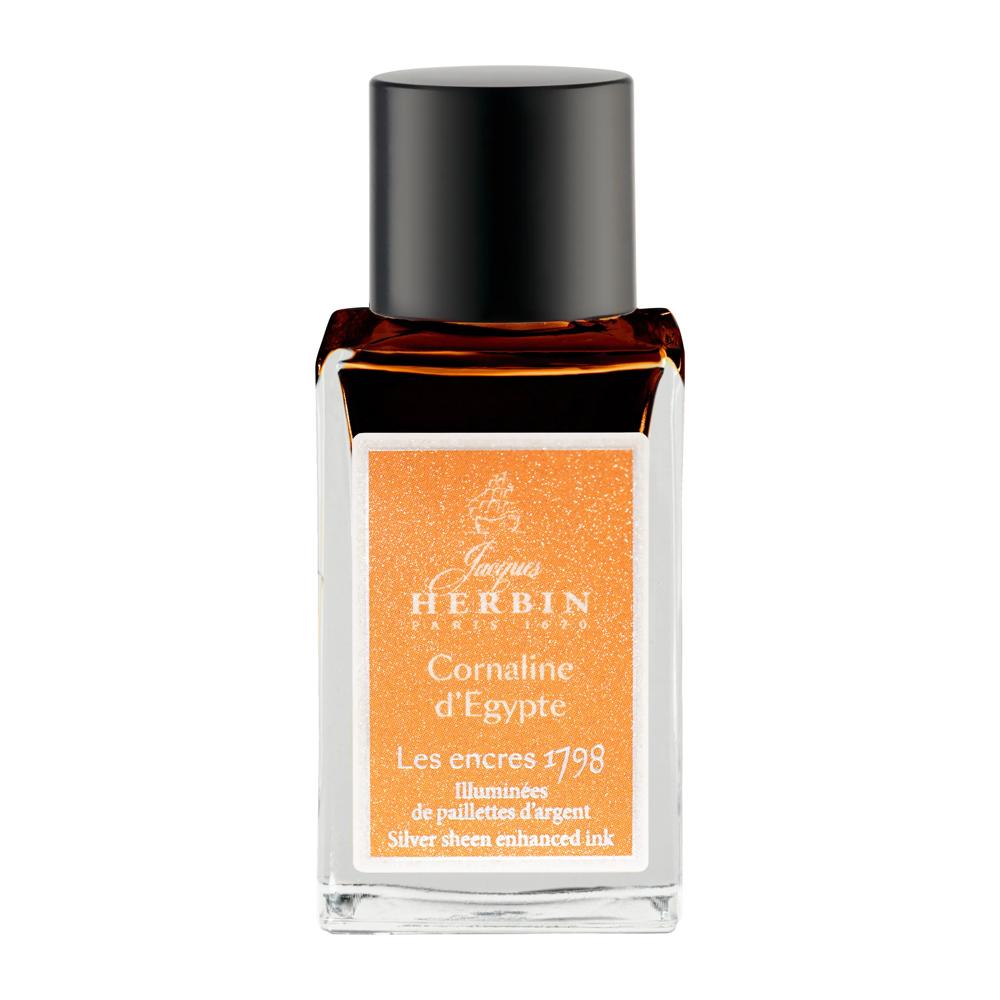 La cornaline d'Egypte de couleur ocre, inspirée de la pierre précieuse, est sublimée grâce à ses paillettes argentées qui brillent de mille feux. Elle apporte ainsi chaleur et élégance aux différents écrits.