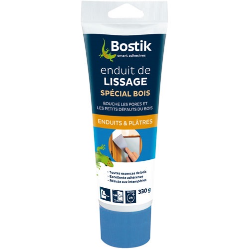 L'enduit de lissage spécial bois en tube de 330 g de la marque BOSTIK. Caractéristiques : Permet de boucher les pores et les petits défauts du bois avant mise en peinture. Toutes essences de bois. Couleur crème. Intérieur/Extérieur.