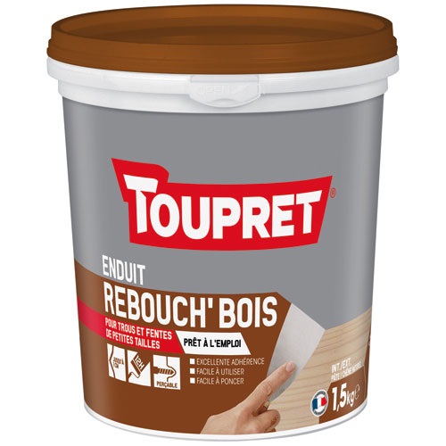 Enduit de rebouchage bois intérieur/extérieur. Rebouche les trous et les fentes sur tous les bois. Prêt à l'emploi. Facile à utiliser et à poncer. Excellente adhérence. Facile à peindre, teinter, vernir, cirer.