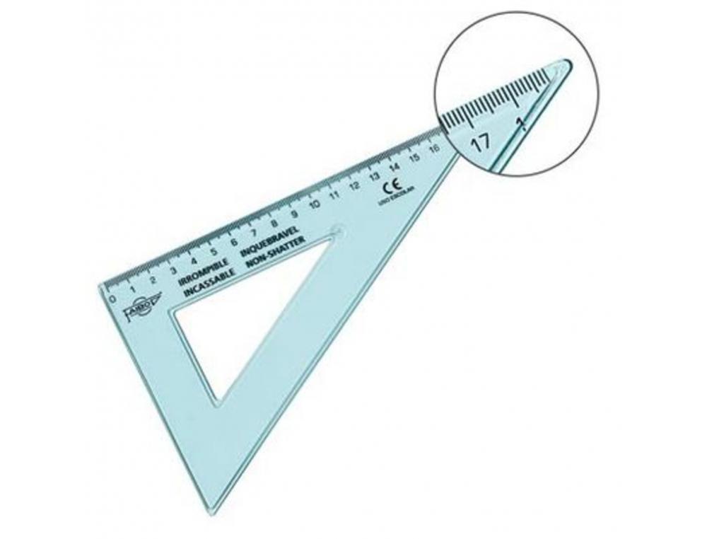 - Design : Sa forme triangulaire inclut un angle droit (90°) et des angles de 30° et 60°, avec une hypoténuse mesurant 20 cm, idéale pour divers usages en dessin technique et géométrique.