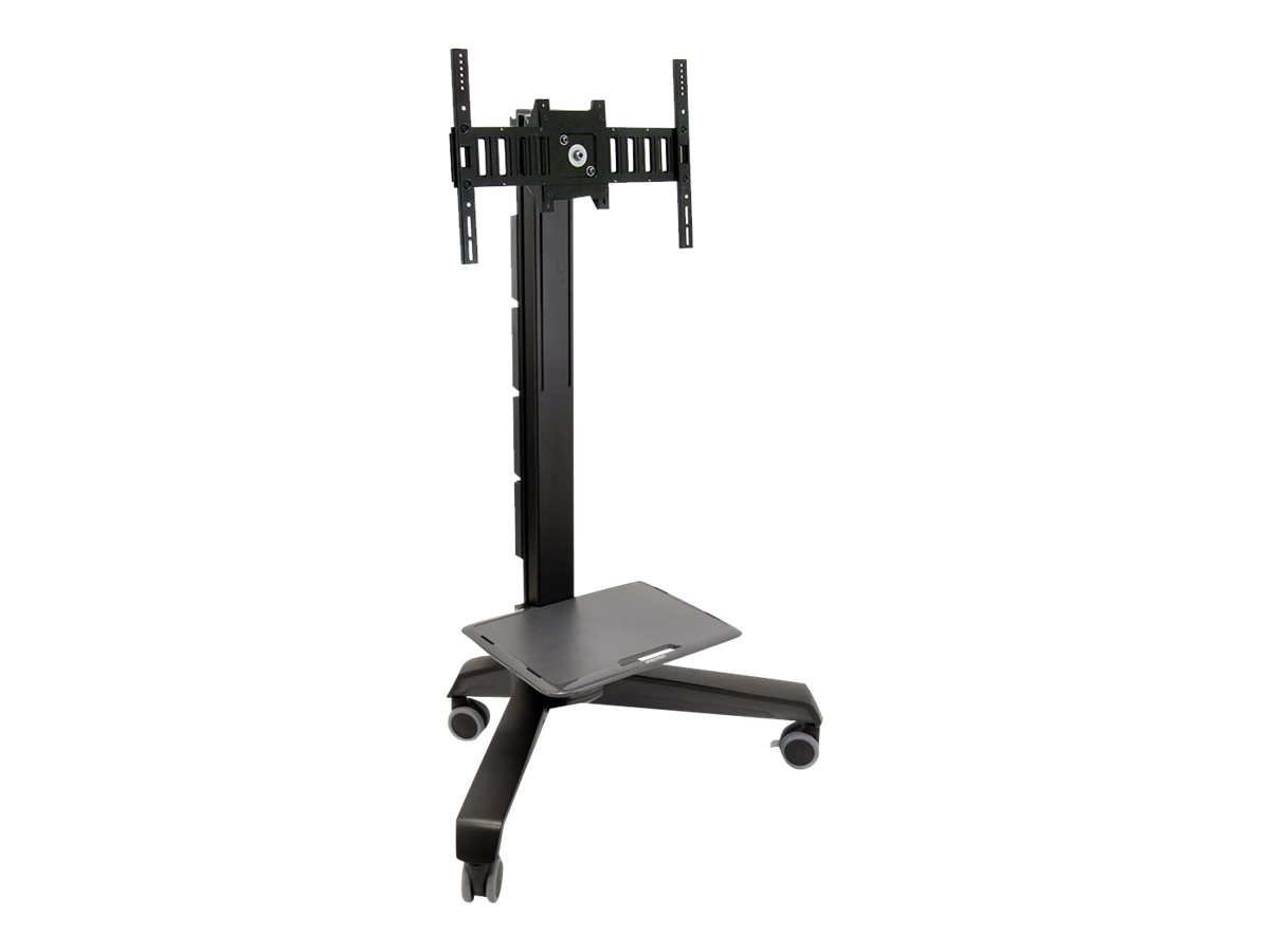 Ce chariot optimise votre investissement en proposant une large gamme d’options de projection. Il offre notamment une rotation horizontale et verticale, un ajustement de la hauteur de 20 po (51 cm), ainsi que la possibilité d’incliner votre écran de 20° de façon indépendante. Obtenez le meilleur positionnement pour les spectateurs assis et debout, pour toute application, à chaque endroit de votre entreprise. Ajustement en un simple geste, pas de bouton ni de levier.