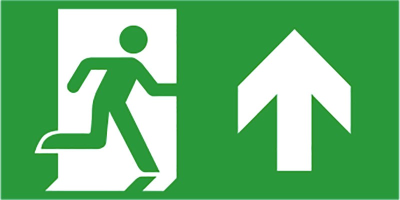 Type d'étiquette : Pictogramme "Sortie de secours" avec flèche orientable
