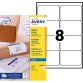 En boîte de 40 feuilles A4, 8 étiquettes par feuille, soit 320 étiquettes au total.