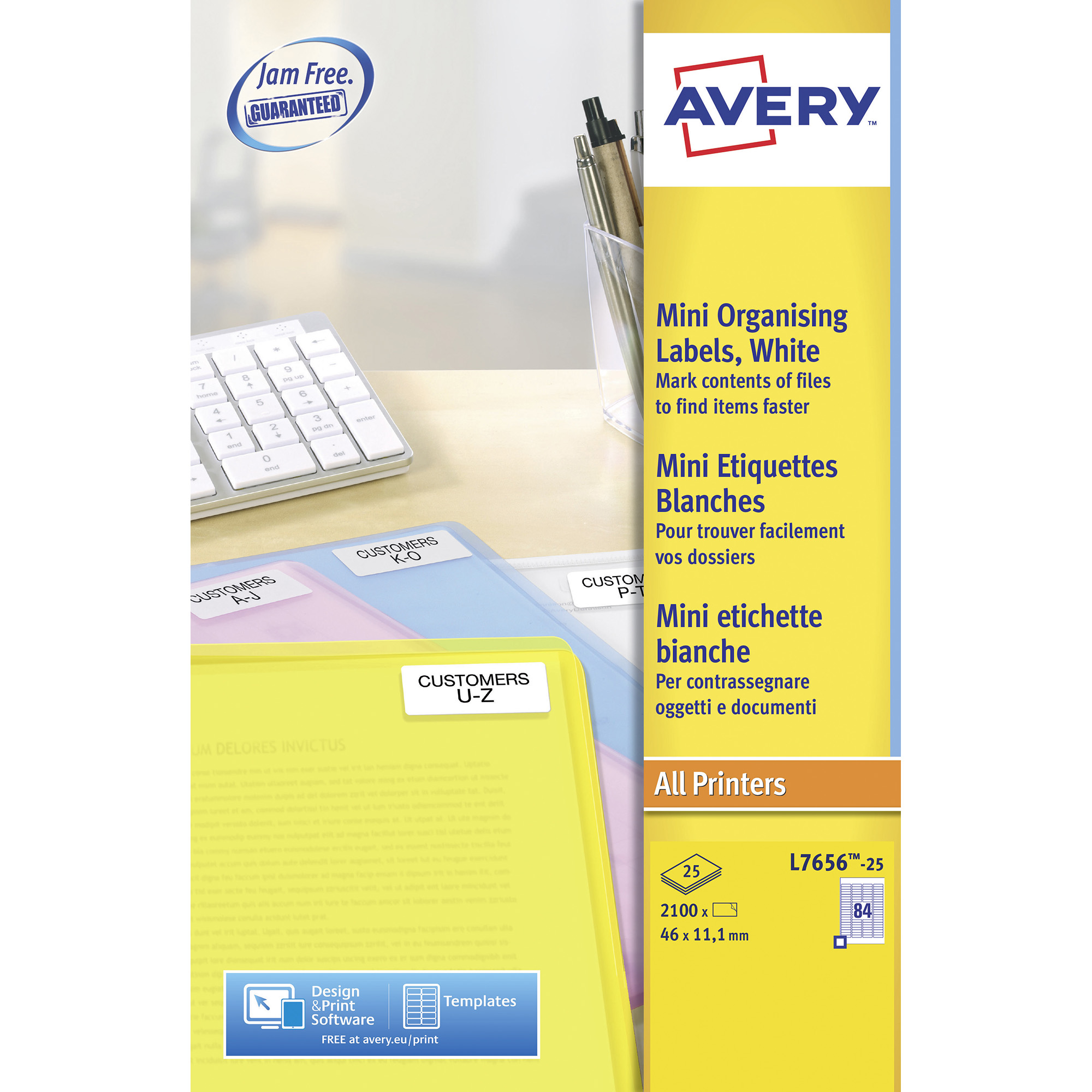 Etiquettes blanches auto-adhésives. Indispensables pour identifier et retrouver rapidement vos dossiers, chemises et boîtes, marquer un produit, prix, codes-barres... Sur feuilles format A4 (21 x 29,7 cm). Compatibles avec les formats préétablis dans les principales suites bureautiques du marché. Dimensions : 46 x 11,1 mm. Boîte de 25 feuilles, 84 étiquettes par feuilles, soit 2100 étiquettes au total.