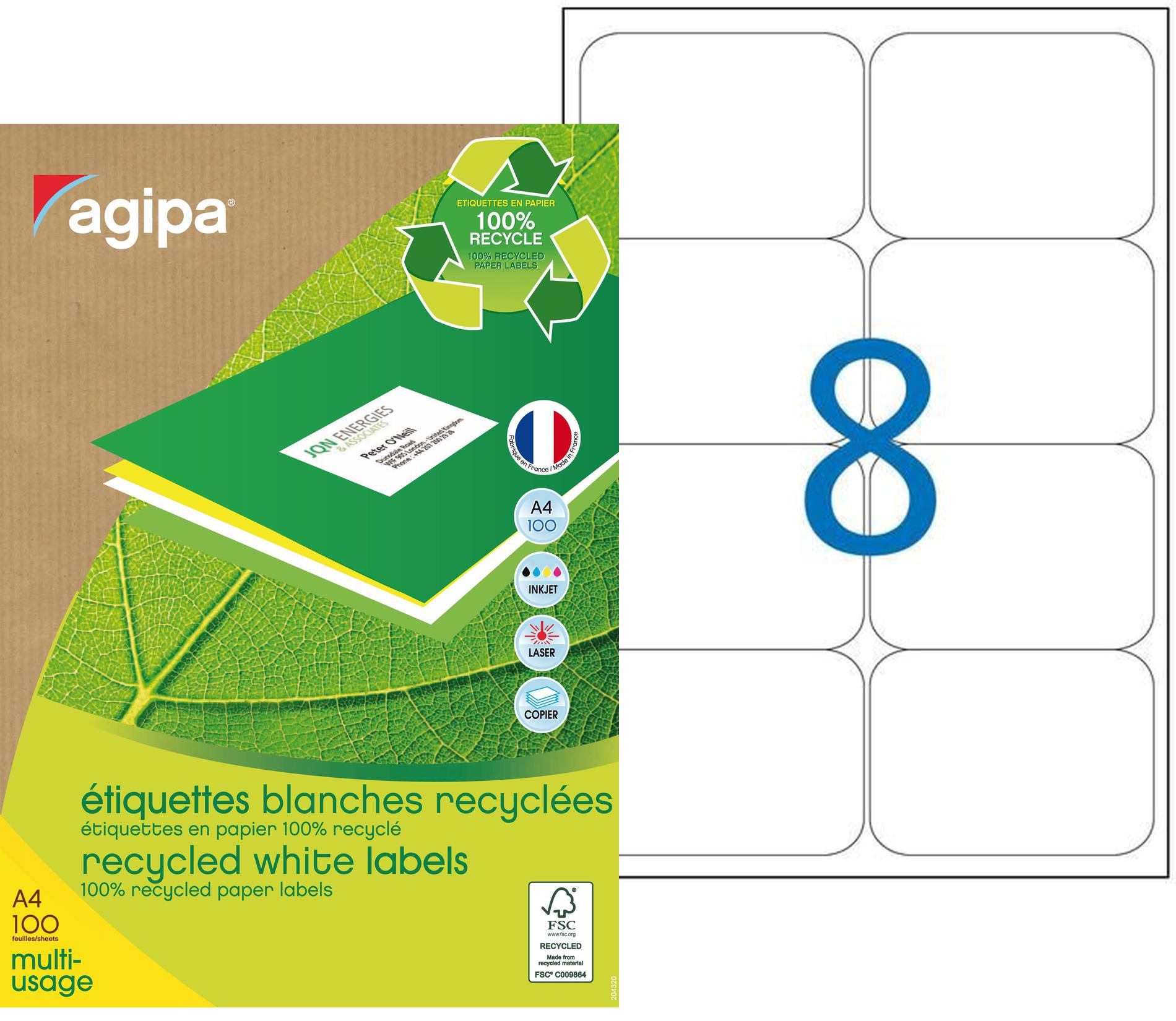 Boîte de 100 feuilles A4 d'étiquettes blanches recyclées multi-usages.