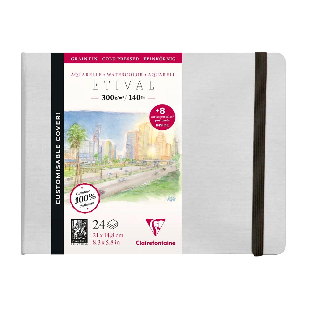 Papier aquarelle Etival 100% cellulose, de qualité étude. Un magnifique carnet au grain fin et régulier pour une plus grande polyvalence. Une élégante couverture rigide toilée avec enduction universelle, entièrement personnalisable. Un plus produit dans chaque carnet : selon le format, des cartes postales ou cartes de visite détachables sont laissées vierges pour inviter à la créativité. Les carnets 21x16cm contiennent quand à eux 4 feuilles volantes de papier buvard. Très résistant au grattage, excellence capacité d'absorption et repentir possible. Sans azurant optique, sans acide et de pH neutre.