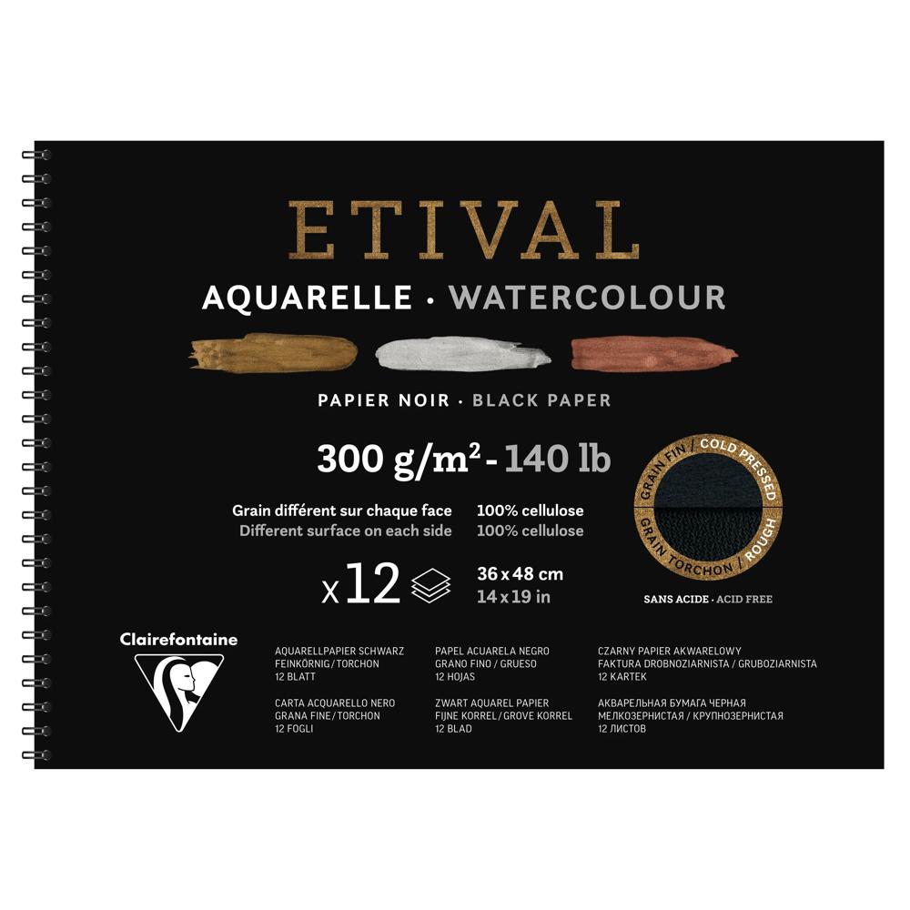 Papier aquarelle Etival 100% cellulose, de qualité étude. Sa teinte noire profonde et son double grain (fin au recto et torchon au verso) offrent de belles alternatives aux aquarellistes. Une surface subtile au recto pour une technique facilitée et une surface unique au verso. Bien adapté aux débutants ou aux utilisateurs occasionnels. Sans acide, de pH neutre excellente conservation et bonne capacité d'absorption.