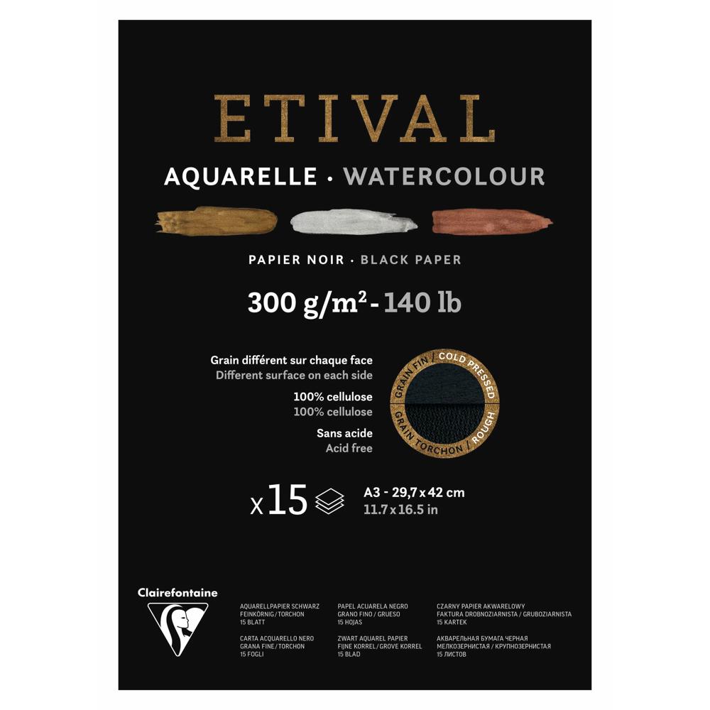 Papier aquarelle Etival 100% cellulose, de qualité étude. Sa teinte noire profonde et son double grain (fin au recto et torchon au verso) offrent de belles alternatives aux aquarellistes. Une surface subtile au recto pour une technique facilitée et une surface unique au verso. Bien adapté aux débutants ou aux utilisateurs occasionnels. Sans acide, de pH neutre excellente conservation et bonne capacité d'absorption.