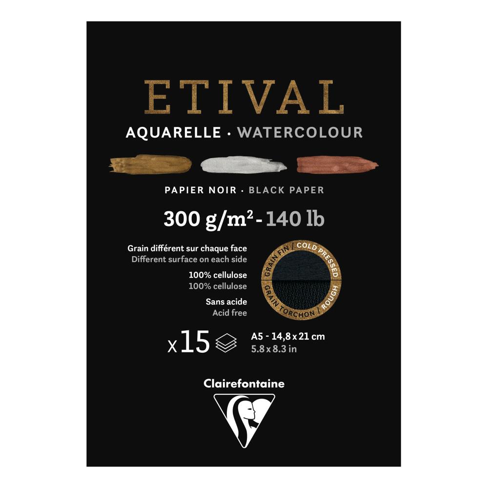 Papier aquarelle Etival 100% cellulose, de qualité étude. Sa teinte noire profonde et son double grain (fin au recto et torchon au verso) offrent de belles alternatives aux aquarellistes. Une surface subtile au recto pour une technique facilitée et une surface unique au verso. Bien adapté aux débutants ou aux utilisateurs occasionnels. Sans acide, de pH neutre excellente conservation et bonne capacité d'absorption.