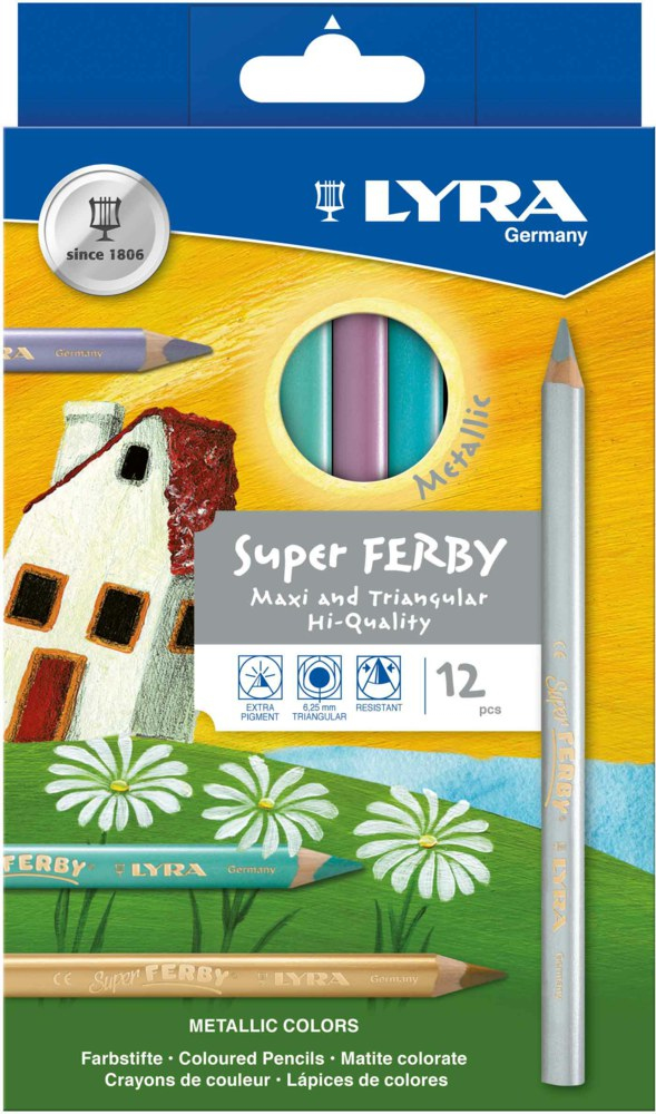 Découvrez l'étui de crayons de couleur Super Ferby de Lyra, parfait pour tous les amateurs de dessins souhaitant ajouter une touche de brillance à leurs 'uvres. Ces crayons sont conçus pour offrir une expérience de dessin unique grâce à leur forme ergonomique et leur mine hautement pigmentée. Profitez de couleurs métalliques assorties pour donner vie à vos créations avec éclat.
