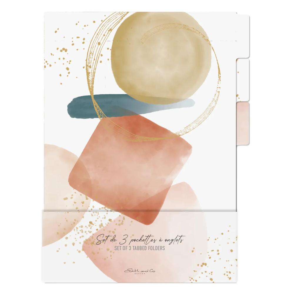 Edith Duprez-Chenu est créatrice de motifs et illustratrice chez Edith and Co Design. Passionnée par les couleurs, les matières, les motifs dans tout ce qui l'entoure, Edith Duprez s'efforce de capturer la beauté de la vie à travers des coups de pinceau fluides et intuitifs. Pour cela, elle affectionne particulièrement l'aquarelle, ce medium qui a sa propre expression, sa délicatesse et qui révèle des couleurs imprévisibles ! Dans cette nouvelle collection, Edith mêle formes géométriques et abstraites, line art et paysages aquarellés dans des nuances de rose, beige, ocre et bleu. Ces teintes poudrées sont sublimées par des touches dorées pour un rendu plein de douceur. 3 visuels assortis motifs géométriques/fleurs/paysage Pochettes à onglets 3 positions 300 g/m2- Une gamme de pochettes haute qualité, aux motifs assortis pour un classement facilement re connaissable, facile à identifier en écrivant au simple stylo le contenu. Qualité : La carte est noble, résistante et certifiée PEFC. Elle présente une excellente résistante au pliage, au déchirement, et aux manipulations. Ultra-pratique ! Les pochettes peuvent être joliment rangées dans le porte-magazines.