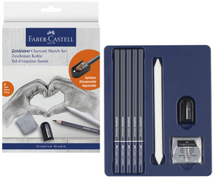 Description détailléePour dessiner et réaliser des esquisses, contient 5 crayons graphite GOLDFABER CHARCOAL, 1 taille-crayon, 1 gomme malléable et 1 estompe