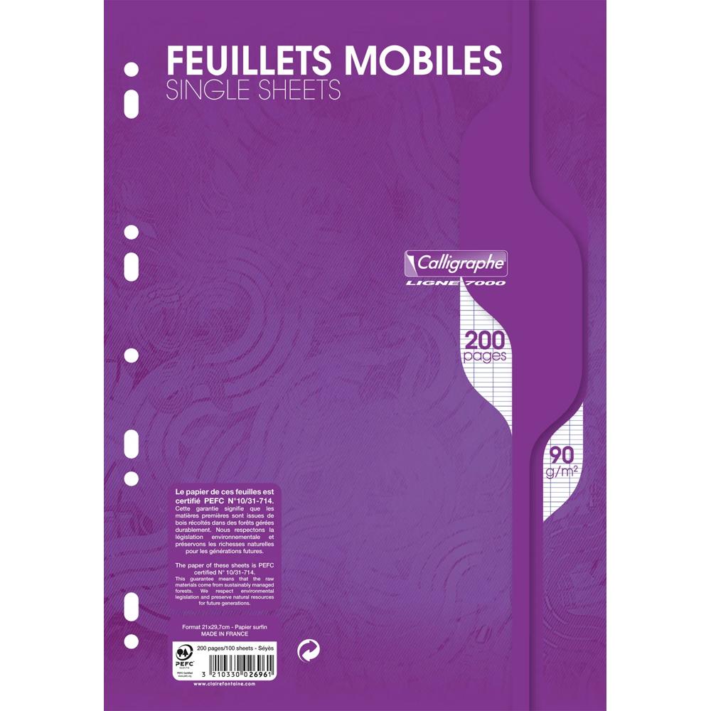 Feuillets mobiles sous film 7000 A4 200 pages perforées grands carreaux 90 g
