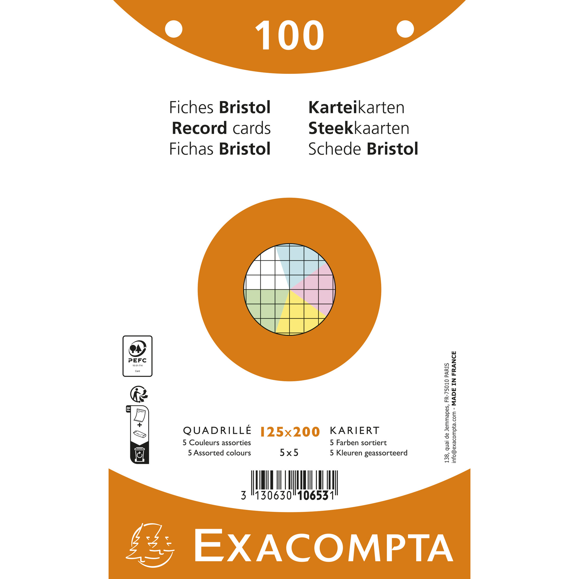 Sachet de 100 fiches bristol, quadrillées 5 x 5 (petits carreaux).