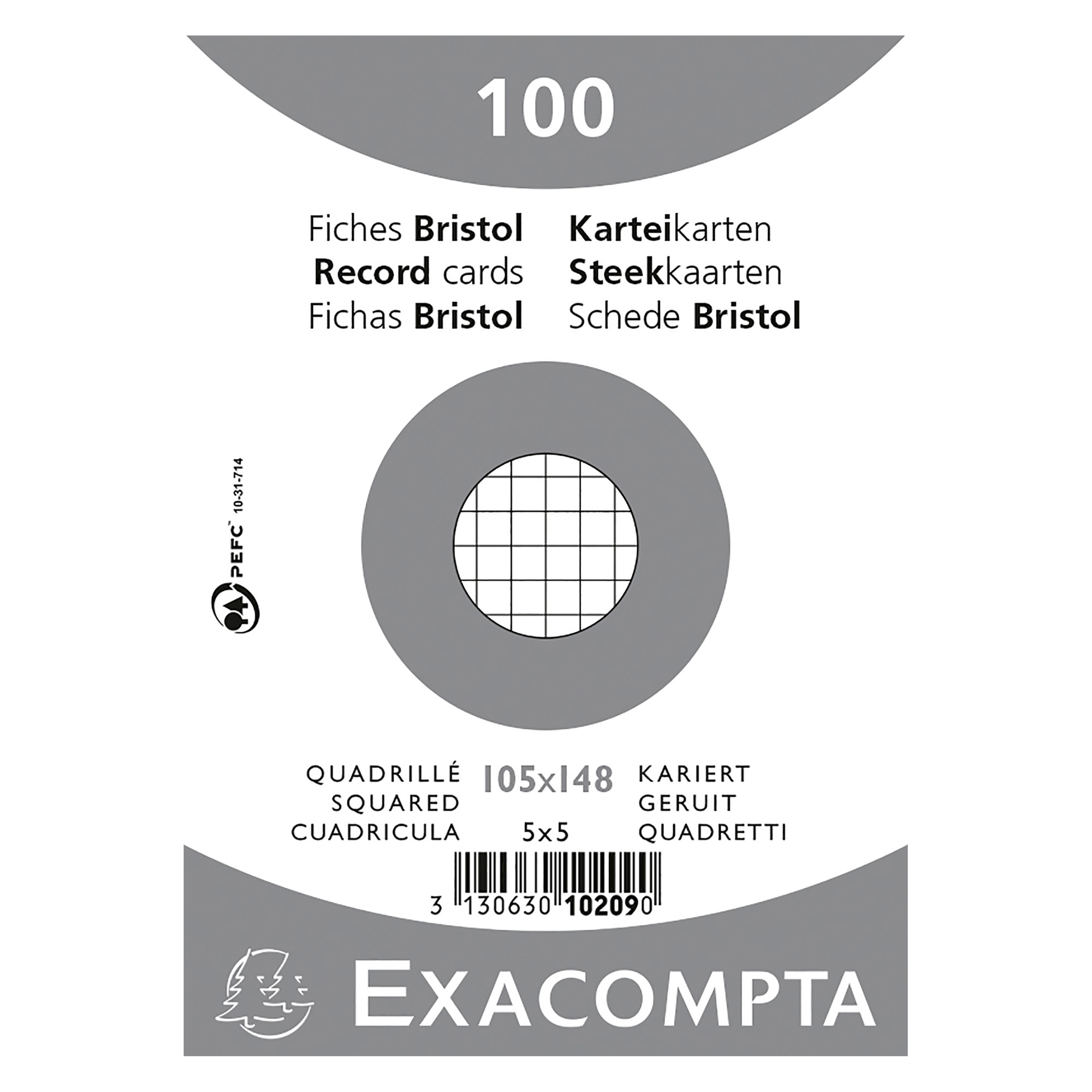 Sachet de 100 fiches bristol, quadrillée 5 x 5 (petits carreaux).
